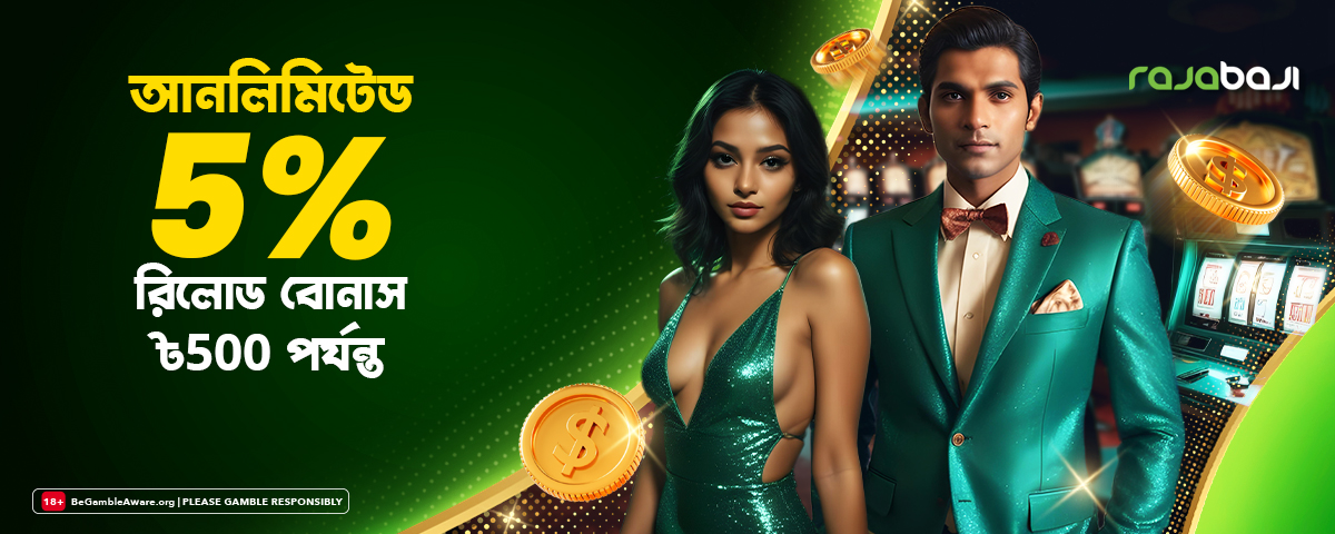Keep reloading your account with the Rajabaji App and enjoy an unlimited 5% reload bonus, up to 500৳ Taka.Live Casino 50% Welcome Bonus Up to 20,000৳ Taka